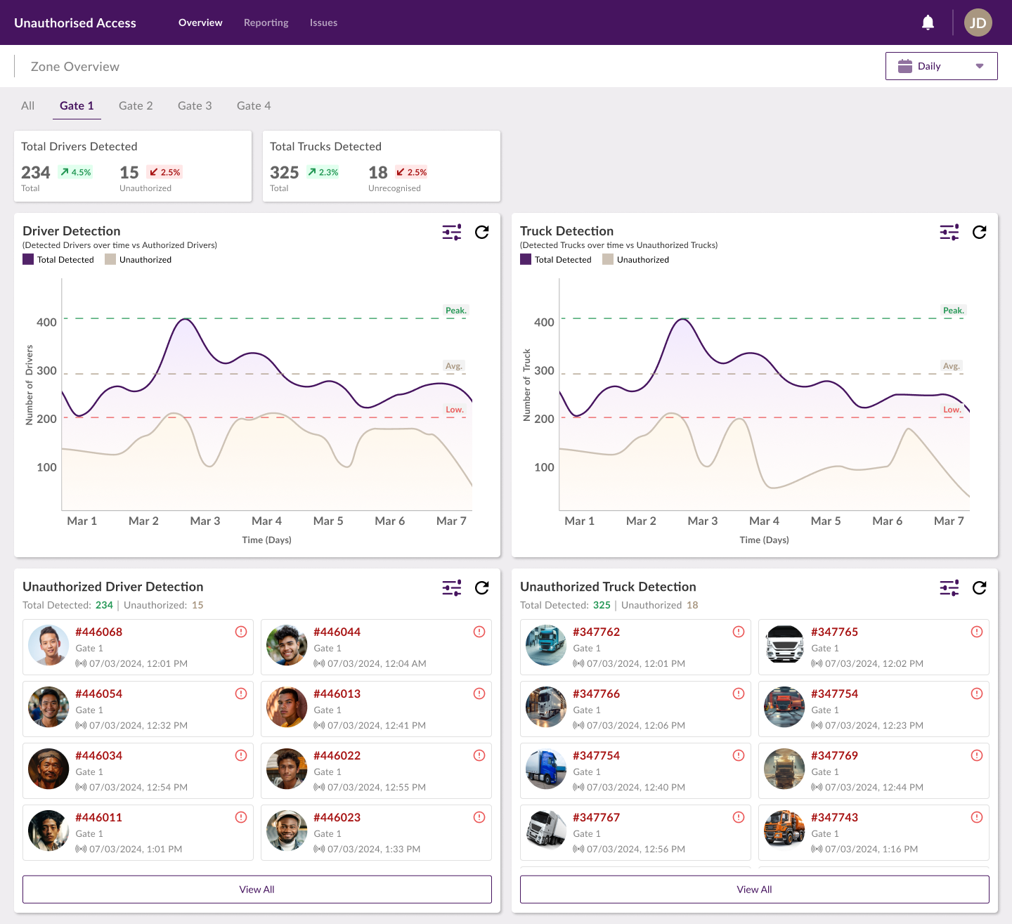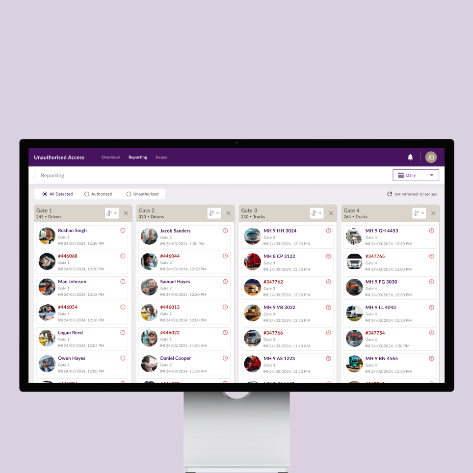 - Alertes en temps réel en cas d'accès non autorisé au personnel ou aux camions